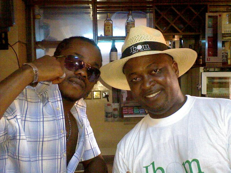 Moments before a concert DJ Dollie is flanked by J. Martins (left) and Timaya two of Nigeria's hottest solo acts.