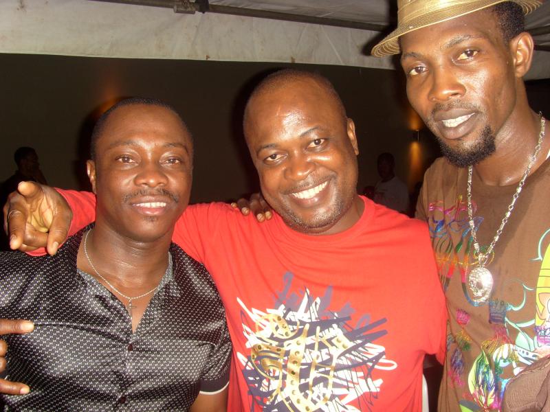 Dollie, right, gets love from Gbenga Adeyinka 1st,(middle) a top comedian and Frank Edoho, host of Nigeria's "Who wants to be a Millionaire"